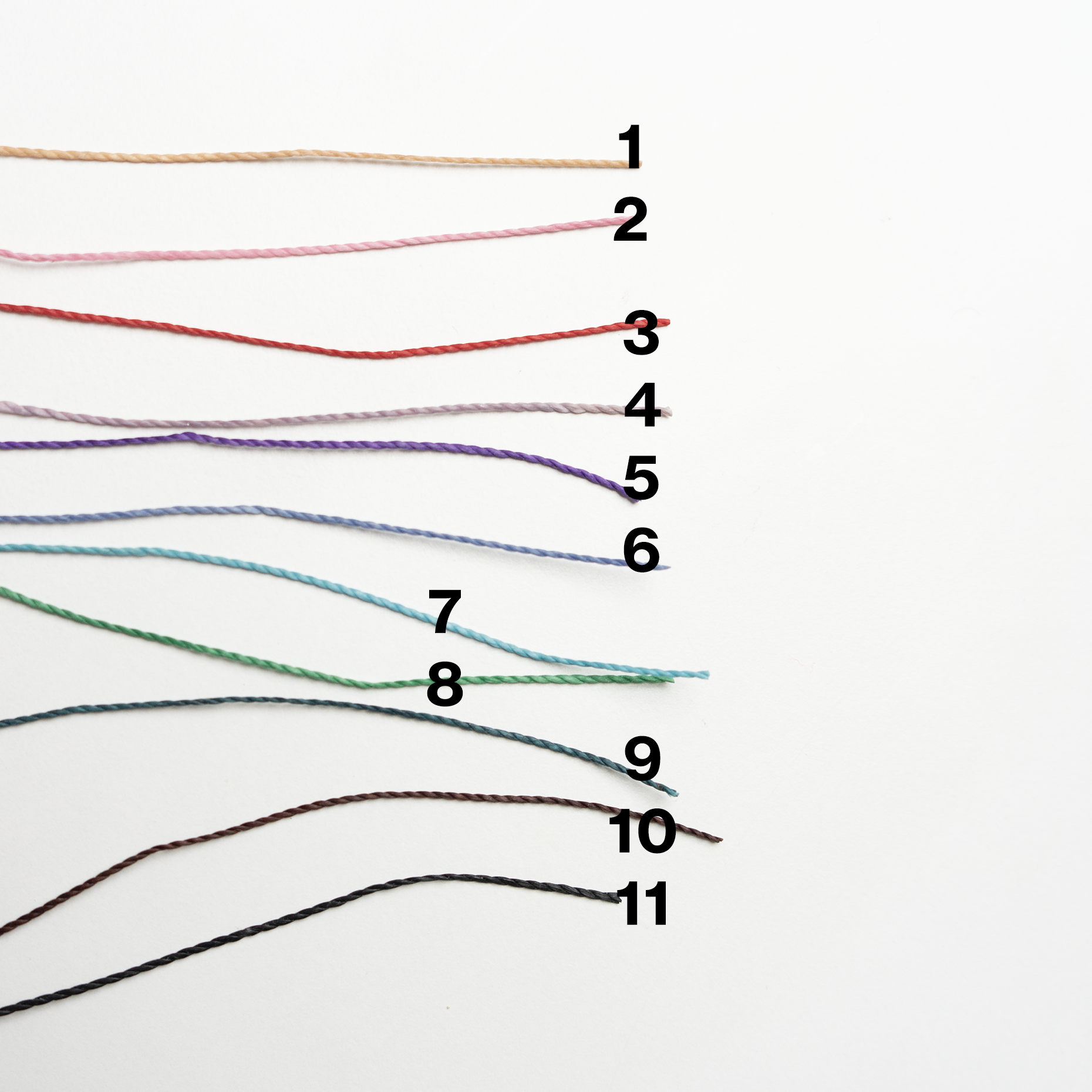 - Soul: the inner, extremely robust ropes – the lifesavers. We use these for eyeglass straps, packaging, and other products.