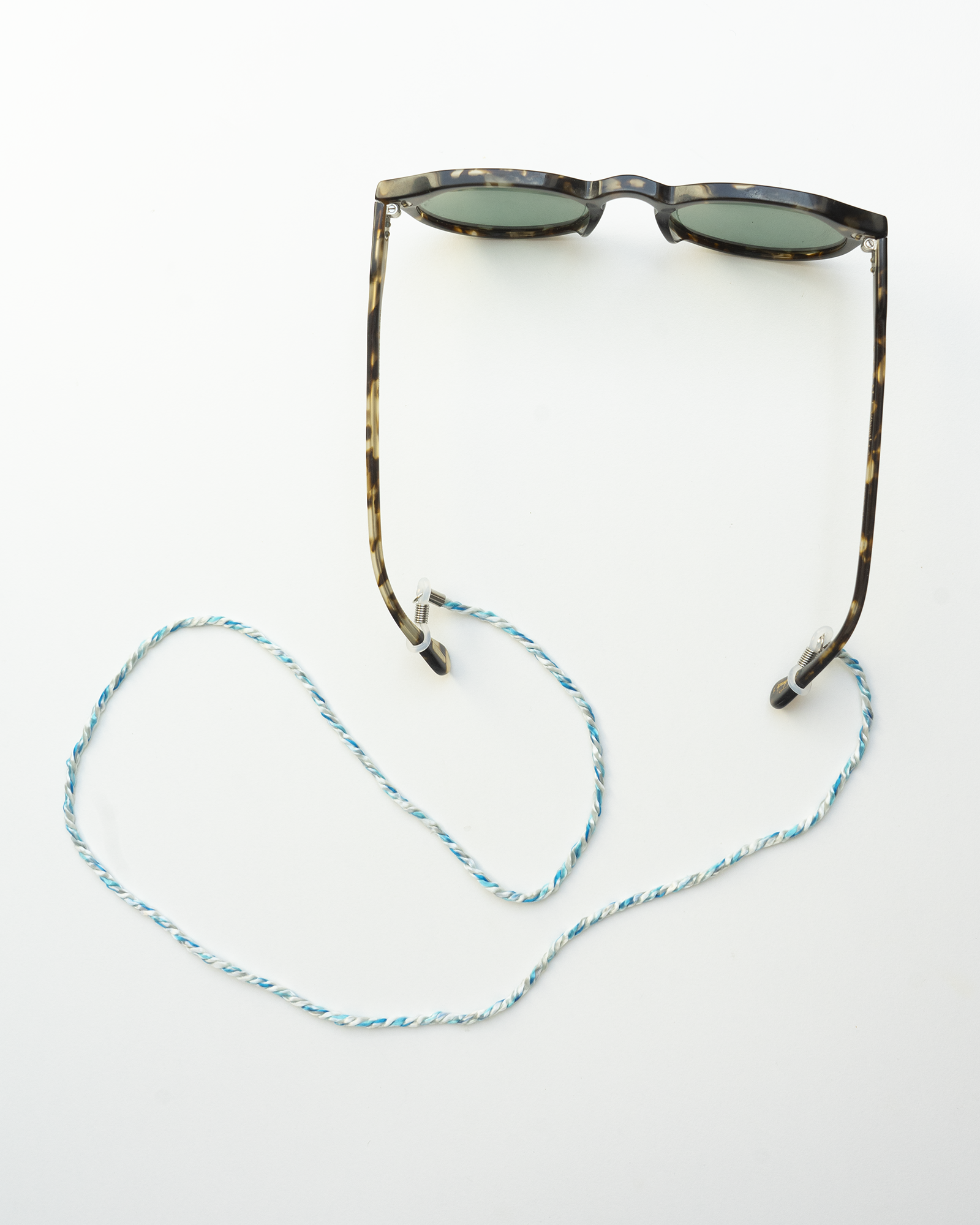 Nur sehr begrenzt: Hilfsstoffe wie Kleber, Ösen, Perlen, Karabiner und Schrauben kommen neu hinzu. Alles andere wird aus alten Seilen, Second-Hand- oder Deadstock-Materialien gefertigt, zum Beispiel unsere bunten Reepschnüre für Brillenbänder und Arm- oder Fußbänder.